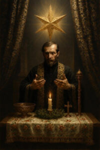 Значення: Вища духовна влада, молитва, благословення. Зірка над головою вказує на божественне заступництво або осяяння.