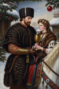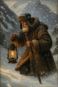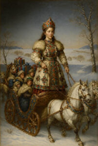 Символізм: Холодна велич, контроль, достаток. Вона везе дітей та подарунки, що наближає її до образу святого Миколая або фольклорної Зими.