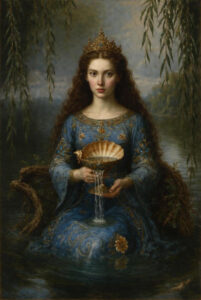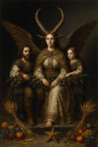 Символізм: Велична жіноча постать з великими рогами оленя та темними крилами. Вона втілює владу над матеріальним світом, інстинктами та земними задоволеннями.