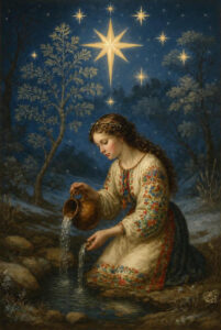 Значення: Надія, зцілення та віра в майбутнє. Карта вказує на те, що ти знайдеш спокій і твій шлях освітлений вищими силами.
