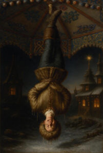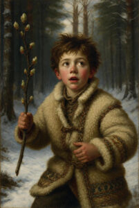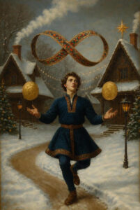 Значення: Невинність та чистота. Це нагадування про те, що навіть у суворих умовах є місце для радості. Сніжки, що левітують, надають сцені відчуття дива.