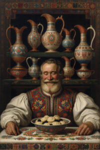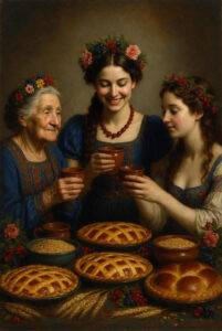Символізм: Хліб — символ гостинності; свічка — зв’язок із Богом; скриня — накопичений досвід та матеріальні блага.