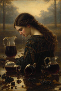 Символізм: Дівчина виливає воду в чисте джерело під світлом